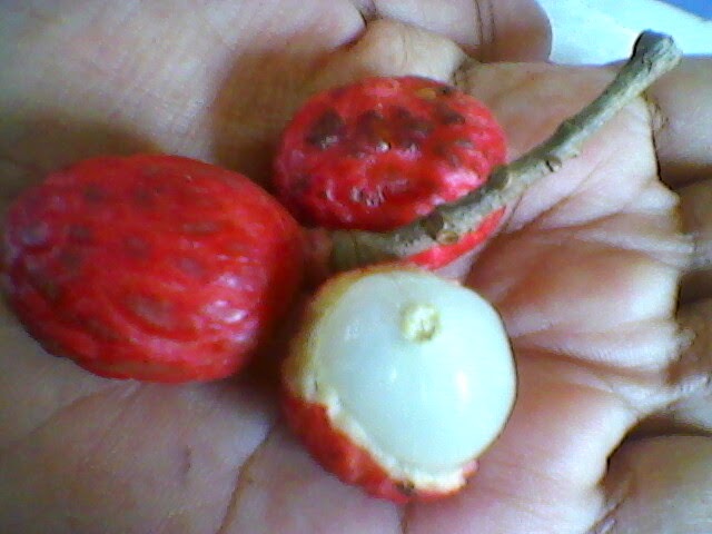 Alhamdullilah...rezeki lagi... kali nie buah hutan plak. buah nie pun baru pertama kali akak jumpa.. kecil comel jer buahnya.. warna kemerah-merahan.. dan rasanya yang masam-masam manis .. Nak kata rasa macam rambutan x jugak .. tapi memang sedap bagi orang yang pertama kali rasa macam akak... hehehe..akak rasa sedap . orang lain tak tahu la plak.... cer teka buah apa???......